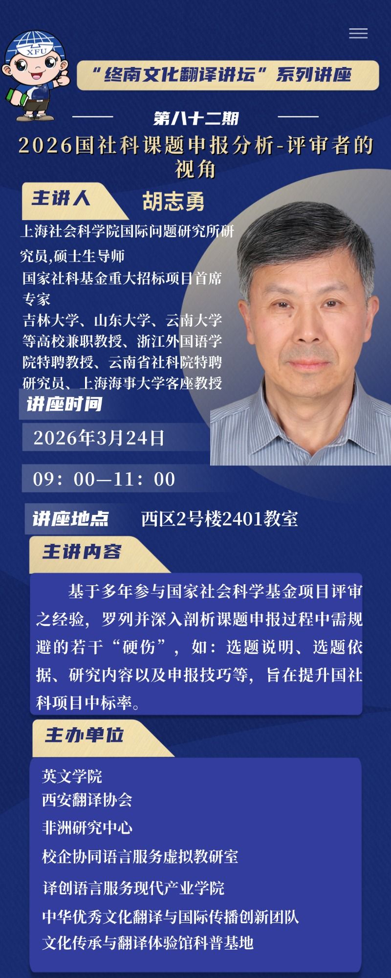 【学术讲座预告】“终南文化翻译讲坛”系列讲座第八十一期...