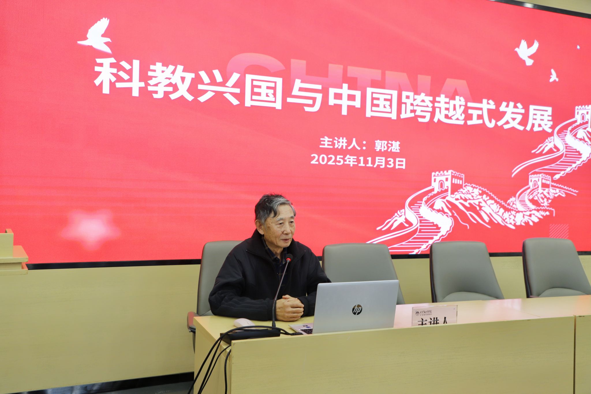报告中,郭湛围绕“科教兴国与中国跨越式发展”主题,系统梳理了党的十八大以来我国在经济、科技、教育等领域取得的辉煌成就。他结合详实的数据指出,中国用几十年时间走完了西方发达国家几百年走过的工业化历程,实现了从跟跑到并跑、领跑的历史性跨越。他强调,中国之所以能实现跨越式发展,关键在于坚持中国共产党的领导和发挥人力资源优势,推动科教兴国战略深入实施,构建起完整的现代产业体系与科技创新生态。