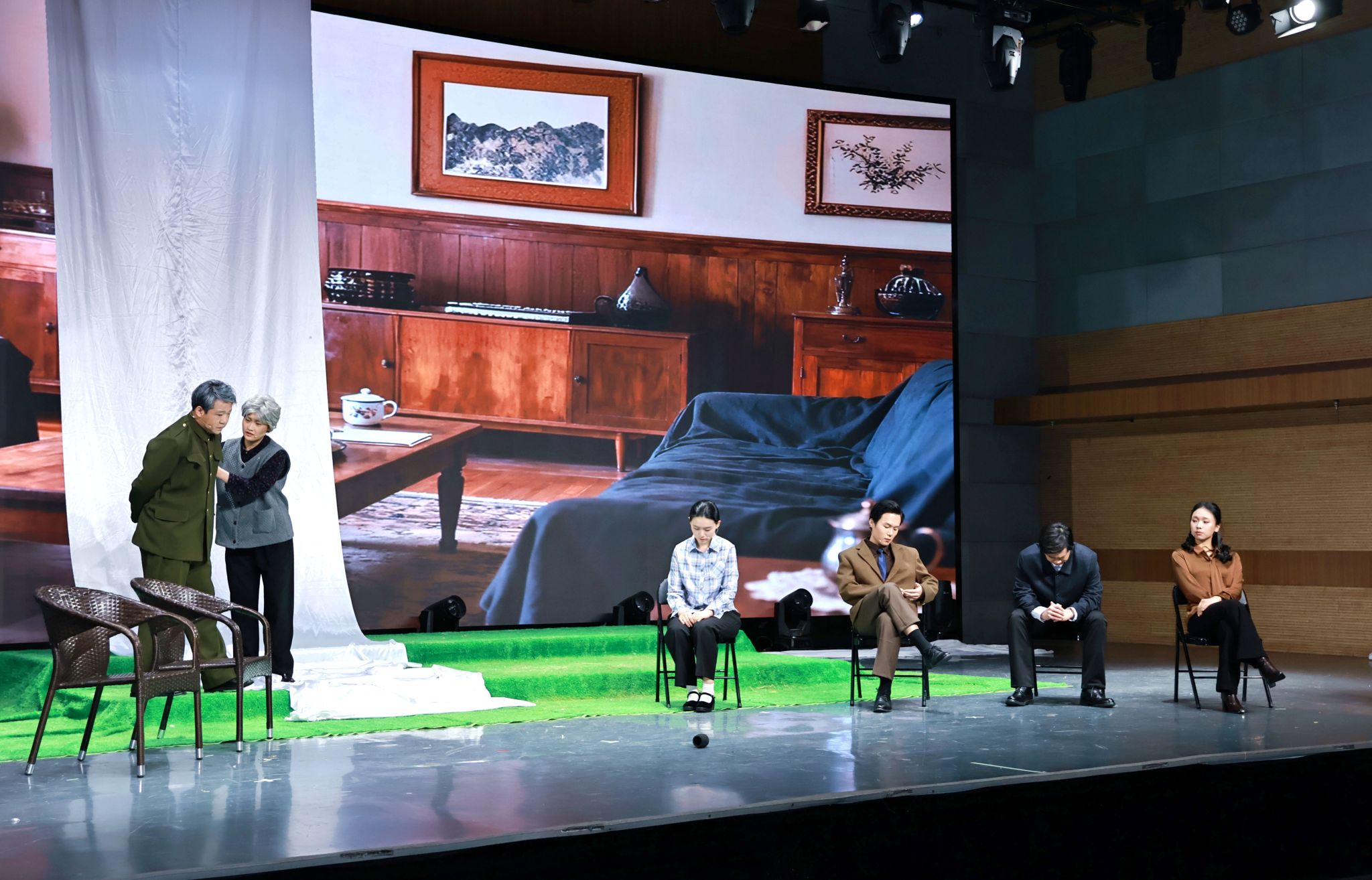 此次毕业大戏由著名编剧黄定山原创剧本加持,梁丽亲自担任复排导演,从角色塑造到舞台调度,从情感表达至艺术升华,每一处细节皆凝聚师生对艺术的不懈追求。演出中,学生们以极具张力的表演诠释剧中人物跨越时空的信仰与坚守,现场掌声雷动。
