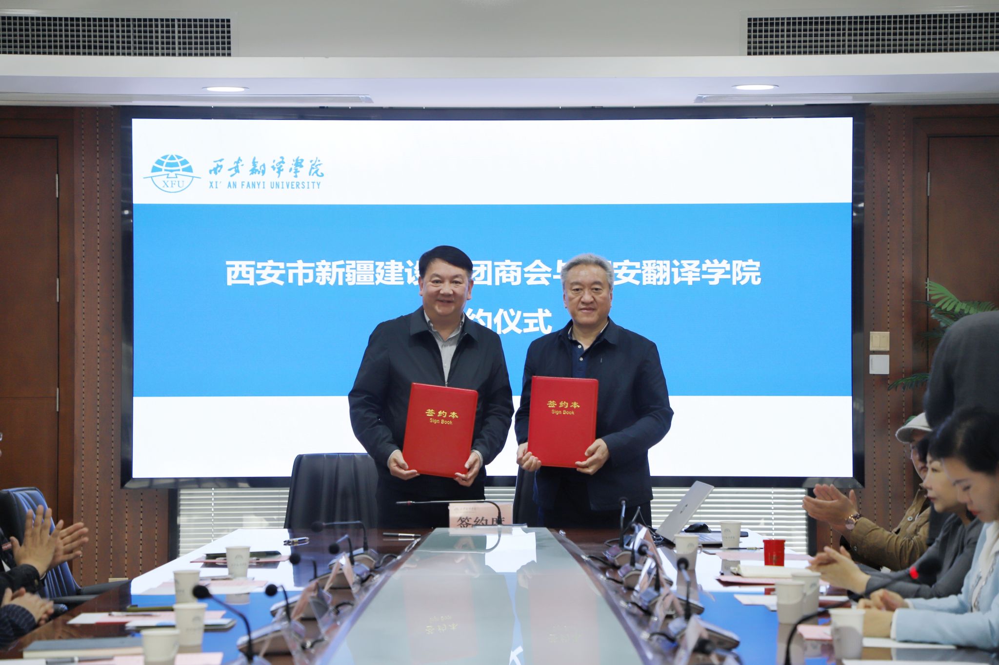 为进一步深化产教融合,拓宽人才培养与就业渠道,4月23日下午,西安翻译学院与西安市新疆生产建设兵团商会举行校企合作座谈会暨签约仪式。西安市新疆生产建设兵团商会会长赵彦宏、书记丁有全、执行会长黄逸安及企业家代表一行到访,西安翻译学院副校长王霖出席活动,大学生就业创业指导服务中心主任高晶晶主持仪式。