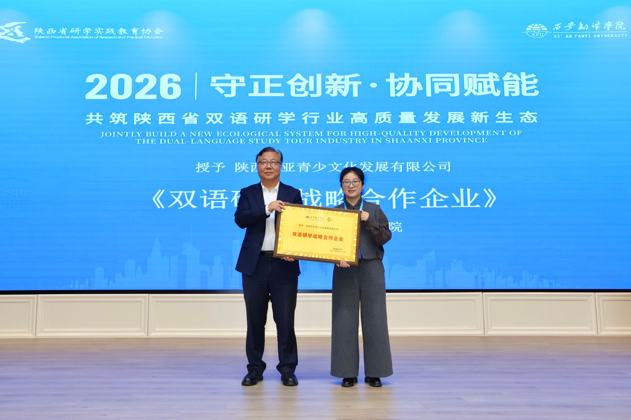4月28日下午,由陕西省研学实践教育协会、西安翻译学院联合主办,陕西环亚青少文化发展有限公司承办的“守正创新・协同赋能——共筑陕西省双语研学行业高质量发展新生态”行业交流会议在西安翻译学院举行。会议汇聚行业专家、高校学者及省内研学机构负责人,旨在搭建高校、行业协会与企业三方对话平台,凝聚行业共识,构建“产学研用”一体化合作机制,推动陕西省双语研学行业向规范化、精品化、国际化方向迈进。