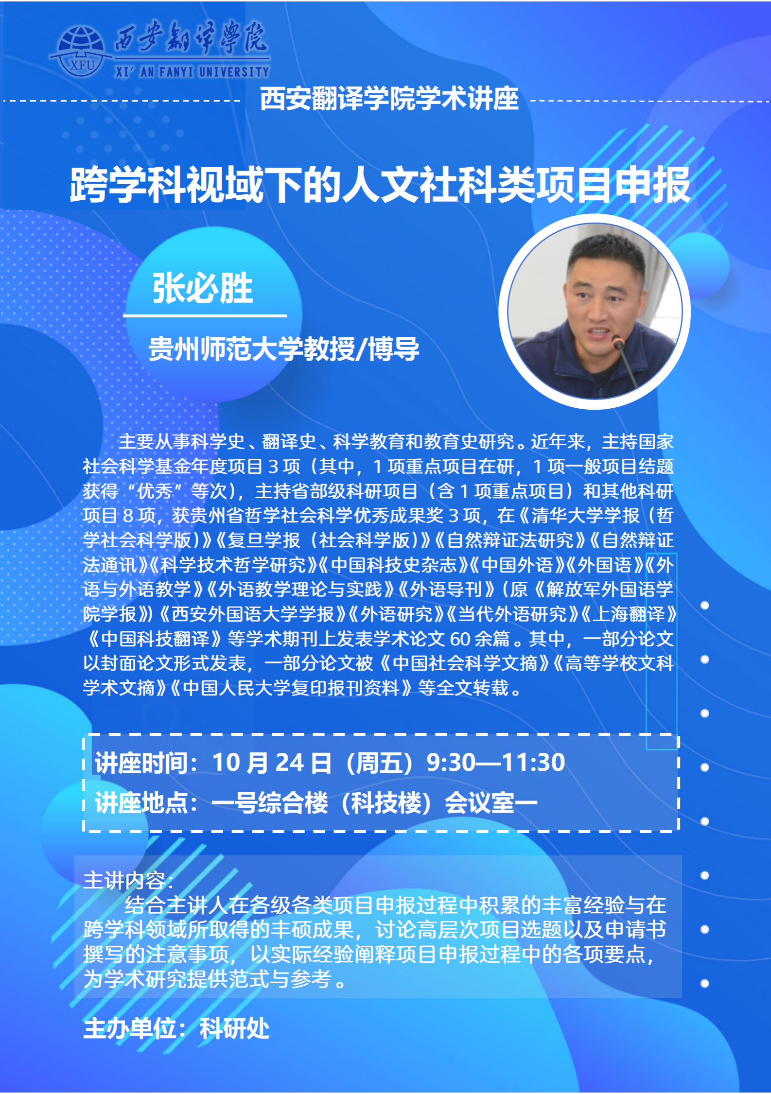 【学术讲座预告】跨学科视域下的人文社科类项目申报