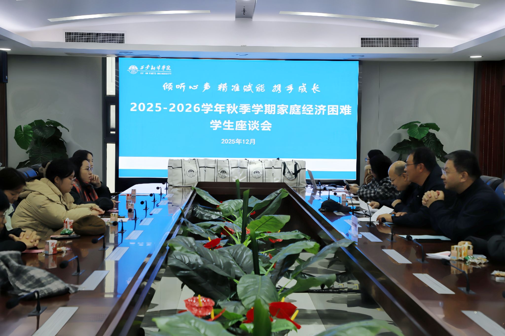 12月4日下午,西安翻译学院举行2025-2026学年秋季学期家庭经济困难学生座谈会。校党委副书记、副校长张恒出席并讲话,学生工作部、学生资助管理中心负责人、相关教师及各年级家庭经济困难学生代表参会。座谈会由学生工作部部长张祥宇主持。张祥宇在主持会议时指出,本次座谈会旨在搭建师生沟通桥梁,倾听学生真实心声,精准传达...