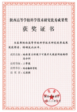 获奖情况 | 2022年3月,荣获陕西省教育厅评选的“陕西高等学校科学技术研究优秀成果三等奖”。 |