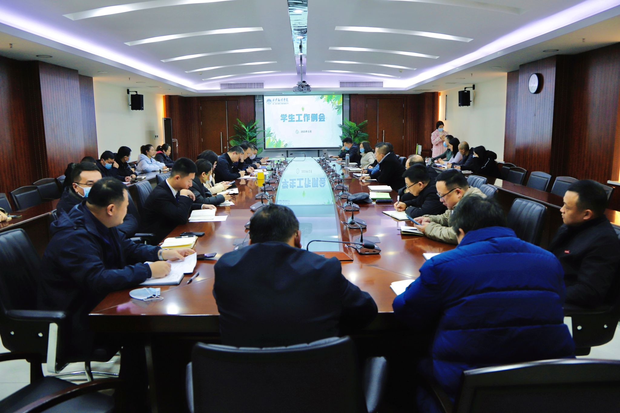 学生教育管理中心对上一期学生工作例会中学生代表提出的意见建议的落实情况进行反馈。并解读《2024届毕业班学生教育管理方案》《西安翻译学院二级学院学生工作年度考核办法(2023年修订草案)》两个文件;学生公寓管理与服务中心汇报了公寓“一站式”工作开展推进情况和辅导员入住公寓情况;学生资助管理中心汇报了国家奖助学评选及申报情况,以及关于召开学风建设表彰大会筹备工作;学生心理健康教育与咨询汇报了近期学生心理健康工作开展情况;学生学业发展中心就学生考研辅导、经典阅读活动、开展终南名家讲堂等重点工作进行汇报;译创大学园区负责人从园区的实习实训基地建设、创新创业孵化、软硬件设施设备等方面进行介绍汇报;校学生会汇报了近期学生中存在的问题及建议。